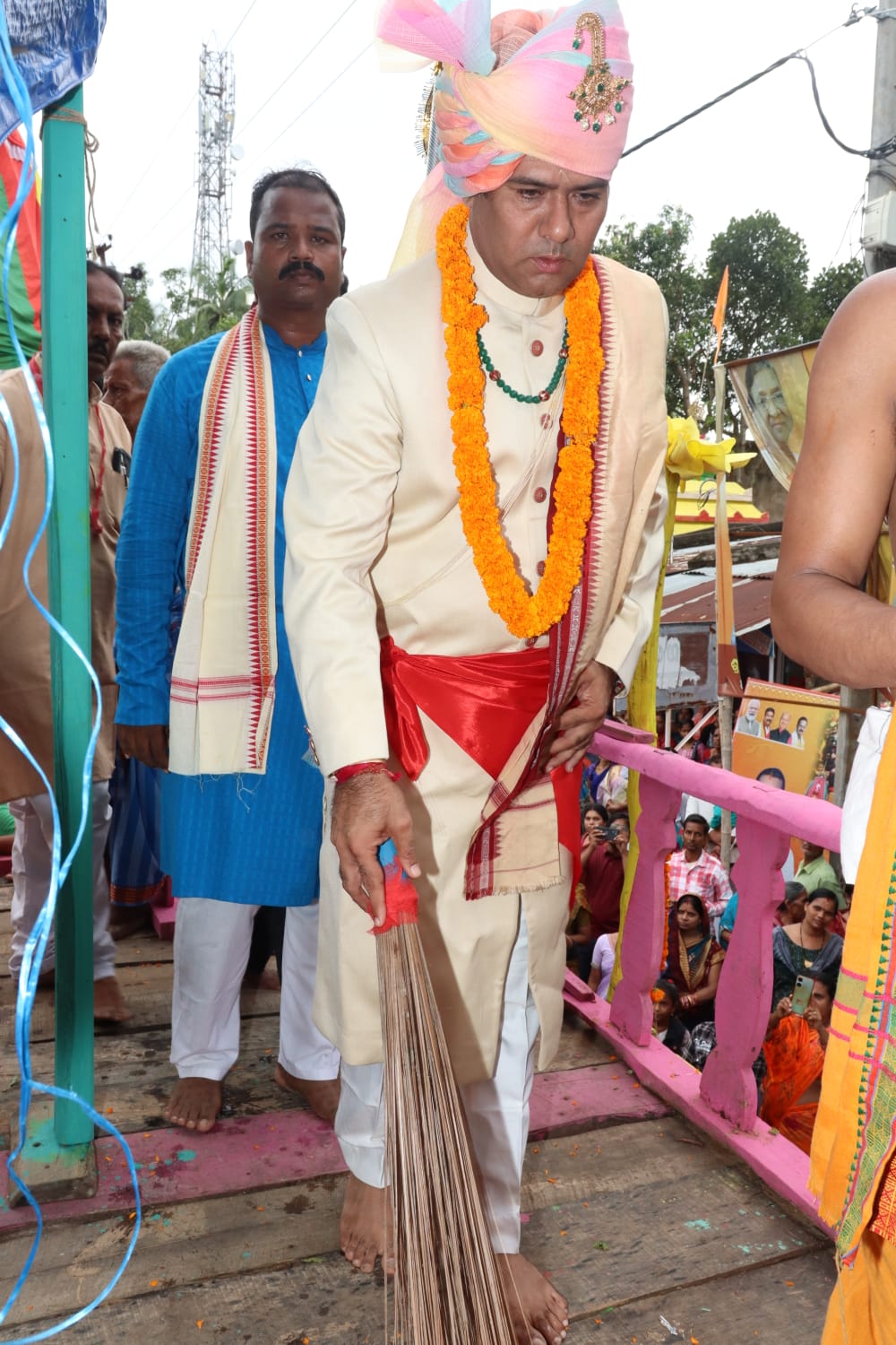 ରଥ ଉପରେ ରାଜ ପୁରୋହିତ ମନ୍ତ୍ର ଉଚ୍ଚାରଣ ମଧ୍ୟରେ ଯୁବରାଜ ସିଦ୍ଧାର୍ଥ ପ୍ରଭୁ ଶ୍ରୀ ଜଗନ୍ନାଥଙ୍କୁ ଆଲଟ, ଚାମର, ଆଳତି ସେବା କରିବା ସହ ରଥ ଚାରିପାଖେ ପାରମ୍ପରିକ ଛେରାପହଁରା ନୀତି ସମ୍ପନ୍ନ କରିଥିଲେ। ଏହି ଅପୂର୍ବ ଦୃଶ୍ୟକୁ ଉପଭୋଗ କରିବାକୁ ଖଣ୍ଡପଡ଼ା ଏବଂ ଆଖ ପାଖ ଅଞ୍ଚଳ ରୁ ହଜାର ହଜାର ଜଗନ୍ନାଥ ଭକ୍ତଙ୍କ ଜନସମାଗମ ହୋଇଥିଲା।